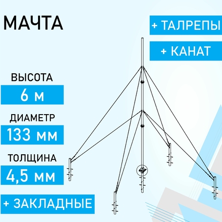 МСФ-6М133 — это комплект мачты с растяжками для верогенератора весом до 350 кг и высотой 6 метров.